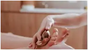 En position allongée, je masse vos pieds avec le bol Kansu et une huile spécifique. Les mouvements circulaires du bol favorisent une relaxation immédiate et une meilleure circulation énergétique.